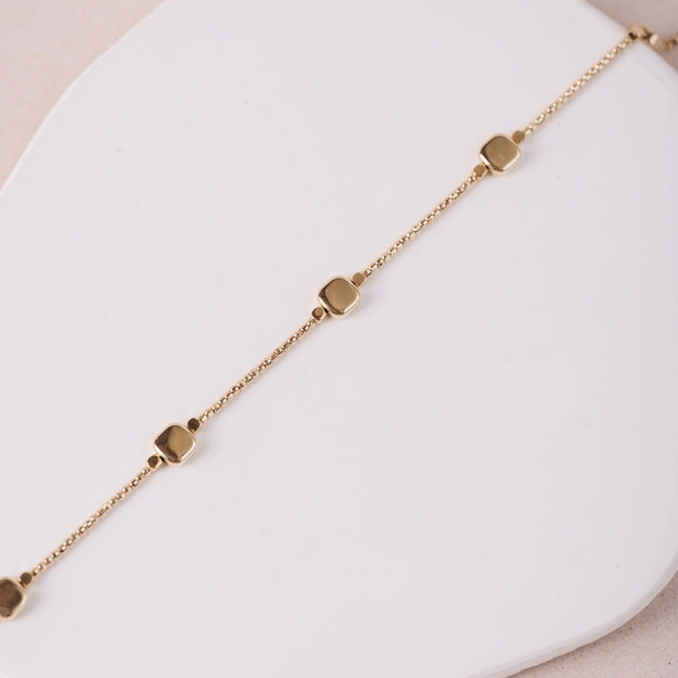 - Nowoczesna złota bransoletka próby 585 z błyszczącymi kwadracikami, które pięknie odbijają światło. Niecodzienny design i elegancki charakter.