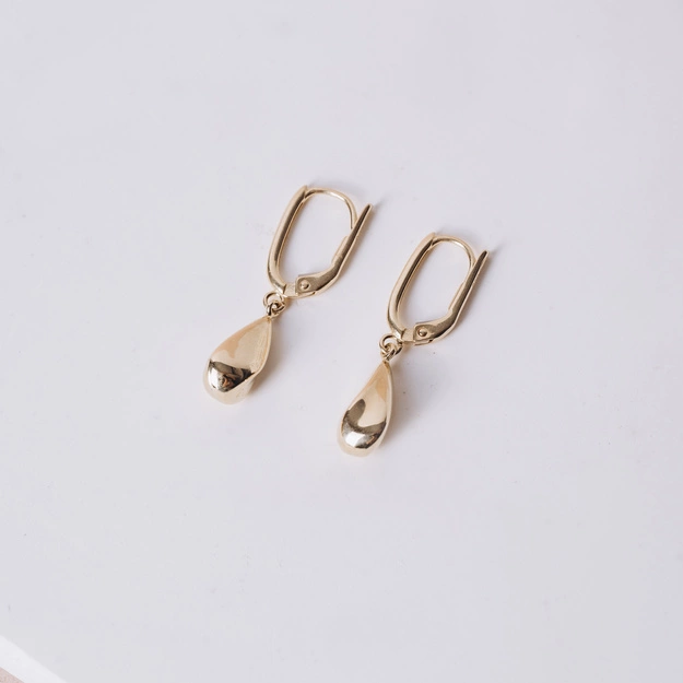 Eleganckie kolczyki wykonane ze złota próby 585, ozdobione subtelnymi, smukłymi zawieszkami w kształcie kropli. Klasyczne angielskie zapięcie zapewnia wygodę oraz bezpieczeństwo noszenia. Minimalistyczny, ponadczasowy design pięknie odbija światło, dodając blasku zarówno codziennym stylizacjom, jak i bardziej wyrafinowanym okazjom. wykle wygodne w noszeniu – idealne zarówno na co dzień, jak i na wyjątkowe okazje.