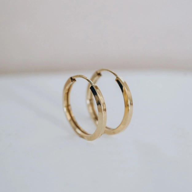 - Kolczyki koła w kwadratowym przekroju, wykonane z wysokiej próby złota 585.