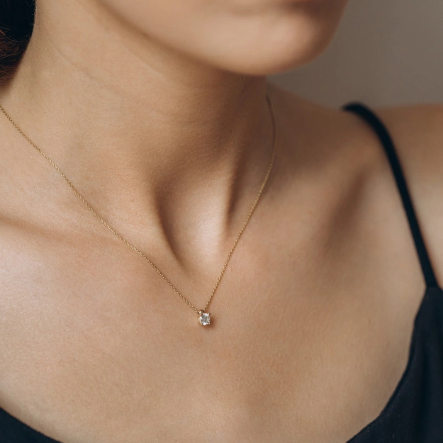 Olśniewający złoty naszyjnik ozdobiony lśniącą cyrkonią, która dodaje blasku i elegancji każdej stylizacji. Wykonany z wysokiej jakości złota, naszyjnik subtelnie podkreśla dekolt, a cyrkonia pięknie odbija światło, tworząc efektowny akcent. To biżuteria idealna na co dzień, jak i na specjalne okazje, dla osób, które cenią subtelne, a zarazem efektowne dodatki.