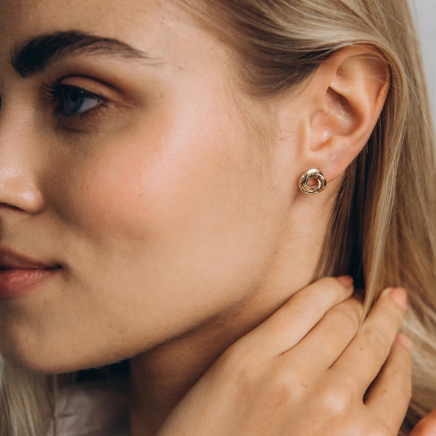Nowoczesne i eleganckie kolczyki w kształcie splecionych, delikatnych okręgów wykonane z żółtego złota próby 585 (14-karatowego). Ich przestrzenna forma przyciąga wzrok subtelnym designem, który doskonale łączy minimalizm z finezją.