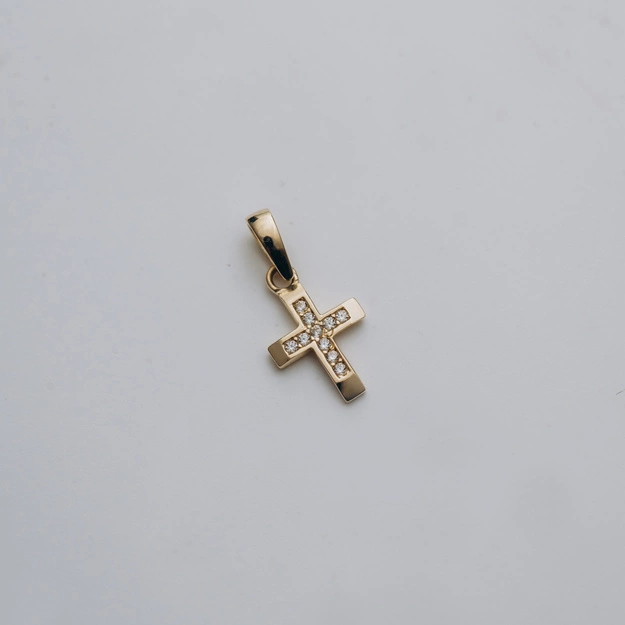 Subtelny i elegancki krzyżyk wykonany z najwyższej jakości złota próby 585 (14K). Jego klasyczna forma została ozdobiona lśniącymi cyrkoniami, które pięknie odbijają światło, nadając zawieszce wyjątkowego blasku.